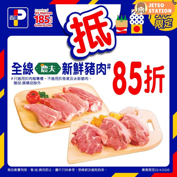 – 全線農夫新鮮豬肉 85折再92折