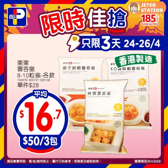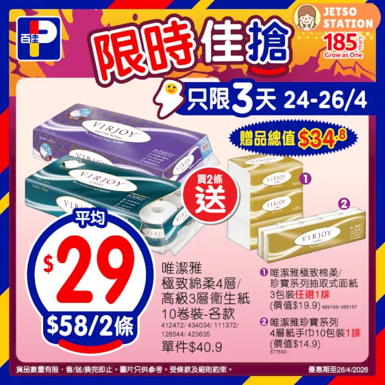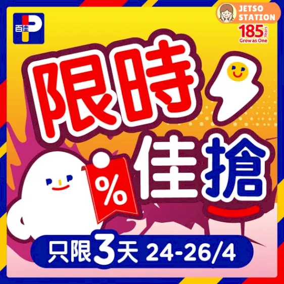 要買筍貨趁而家!限時3日(24-26/4)超抵價日常必備產品,立即嚟百佳旗下超市或PNS網購入手啦!