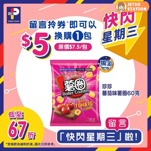 快閃星期三又嚟啦~召喚零食控!成日口痕唔知食咩好,咁就要試吓百佳獨家嘅珍珍蕃茄味薯圈!佢入口鬆脆,啖啖濃郁蕃茄味依家留言 👉快閃星期三👈 ,即可以優惠價換購 1包,快啲嚟百佳入貨啦!