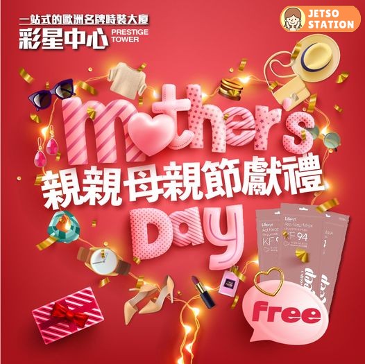 母親節當然要向媽媽表達孝心同謝意,想好好plan 母親節行程?仔女陪媽咪行街 Shopping 同時買埋母親節禮物,媽咪一定甜到入心!想媽咪買得開心,喺彩星中心除咗有歐洲名牌手袋服飾超級大優惠,仲送上一連串母親節溫馨禮遇!今個母親節,用一份精心挑選的禮物來表達對媽媽的愛,仲可以盡情shopping!母親節快樂!顧客只需以電子消費每滿HK$1,000,即免費賞你我哋為您搜羅嘅精選禮物,愈買愈多賞!