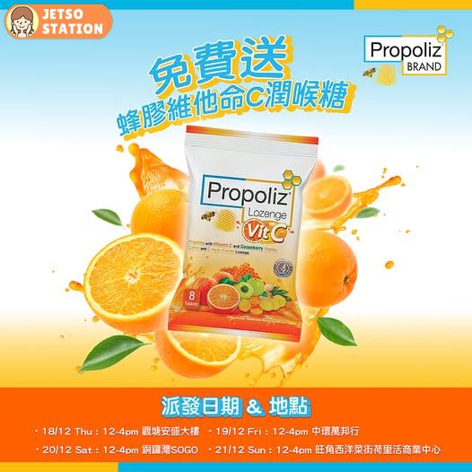 潤喉靚聲大放送!Propoliz 蜂膠蜜糖維他命 C 潤喉糖 突襲香港街頭,為你擊退喉嚨不適!