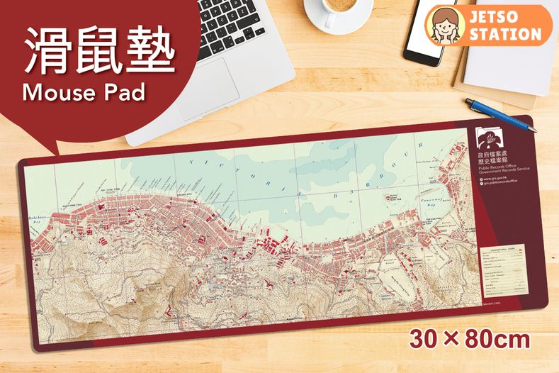 由2026年1月5日起,大家嚟歷史檔案館參觀專題展覽並完成展覽單張內嘅任務(二)就可以換領印有1949年香港島地圖嘅滑鼠墊一張 (尺寸:30 x 80 cm)!地圖上有唔少細節有待大家慢慢發掘。任務(一)送出嘅紀念品維持不變。記住過嚟參觀展覽同埋換領精美紀念品喇!