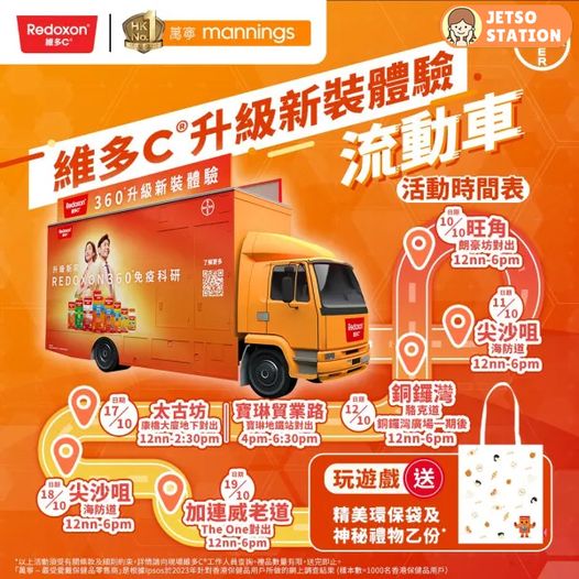 今個秋天,係維多C®嘅重大日子!維多C由九月起推出全新包裝設計,以新品牌形象秉承守衛香港人健康承諾,繼續提供全面免疫健康支援!為咗令大家可以體驗維多C®新包裝嶄新設計,維多C®升級新裝體驗流動車將會快閃出動,喺10月10日起一連兩個週末喺全港鬧市同大家見面!到時仲有維多C®特派專員同大家玩遊戲,完成遊戲活動後可獲得限定禮品*!