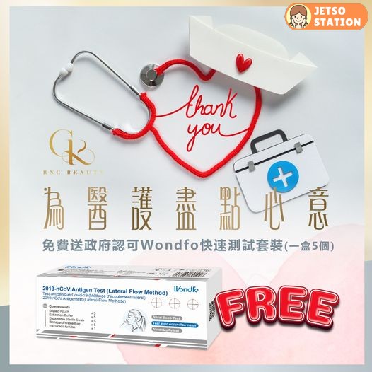 為抗疫中的醫護們盡點心意,RNC與您同心抗疫。免費送政府認可Wondfo快速測試套裝(一盒5個裝) 給醫護人員。