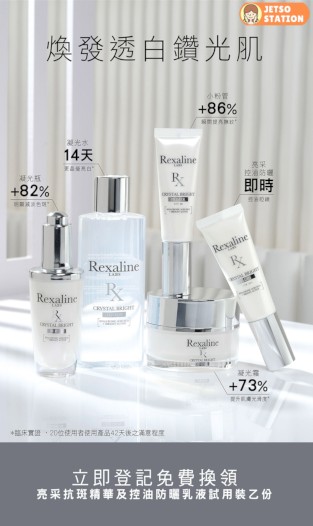 打造夢寐以求的鑽白肌膚,就要由肌底著手。法國醫美級玻尿酸專家Rexaline獨家登陸莎莎,帶來Crystal Bright 鑽白亮采系列,讓您瞬間實現煥白美麗蛻變。透過專利醫美級雙倍玻尿酸,以高效滲透能力將高低分子玻尿酸注入肌底,有效將水分鎖緊並迅速減淡皺紋。配合美白抗氧化成分活性沒食子酸複合物,能夠擊退色素及提亮膚色,並防止水分流失,重現亮白飽滿肌膚。