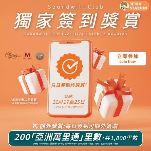 玩法非常簡單,只需要日日簽到,豐富獎賞等住你,當中包括會員積分、餐飲禮券及額外獲贈200「亞洲萬里通」里數,玩足咁多日共賺取1,800里數!記得日日都要玩啊!!