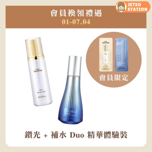 su:m37°會員 免費換領鎏金溯茫白松露淨膚肌底液、水漾補濕免疫力精華體驗裝