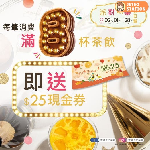 現凡購買滿8杯茶飲,即送您天仁茗茶$25現金券(乙張)