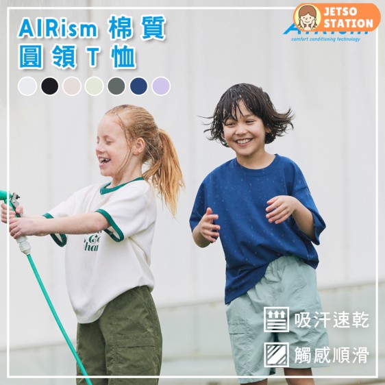 小朋友成日周圍放電去探索世界搞到一身汗,玩到濕笠笠,唔舒服不但止仲好容易攝親 , #涼爽神隊友 AIRism 棉質 T 恤 可以幫到各位爸爸媽媽 , #獨家AIRism物料 具有 #吸汗速乾 #柔軟順滑 等功能,而且#舒適合身 #百搭易襯 守護小朋友嘅夏日涼爽。