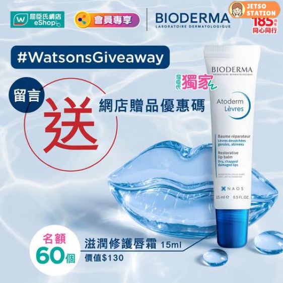 【#WatsonsGiveaway – 送BIODERMA滋潤修護唇霜 有獎遊戲 】