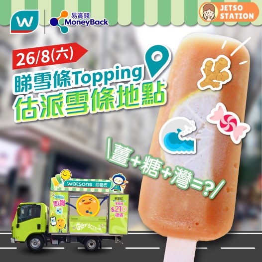 屈臣氏將於今個週末8月26日至27日遊走銅鑼灣、香港仔、旺角及大圍,即場登記成易賞錢App會員,即賞4重禮遇,卡會員亦可享限時優惠,包括免費派 Stickhouse 意大利手工雪條、憑券到指定分店消費即送禮物包、訂閱屈臣氏WhatsApp可獲取$10門市電子優惠券,以及賺取$210迎新優惠!記住以下時間及地點*,萬勿錯過!