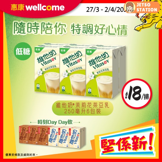 – 維他奶®茉莉花茶豆乳250毫升6包裝 優惠價$18/排