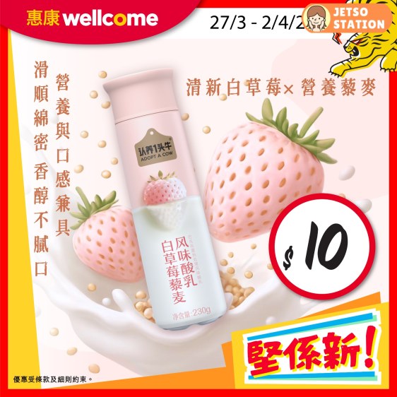 – 認養一頭牛 白草莓藜麥風味乳酪飲品 優惠價$10/支