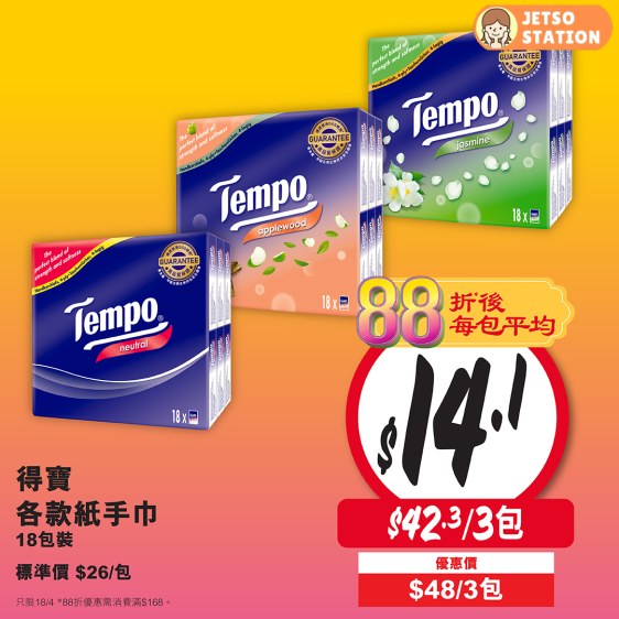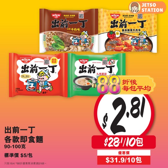 星期六(18/4)嚟門市掃貨,買滿$168,即享88折,折扣無上限,快閃優惠只限一天,唔好錯過呀!