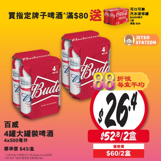*4月18日於門市買滿$168享88折。優惠不適用於yuu積分兌換之$80及$165電子現金券。優惠不適用於7-11及店外展銷場、任何儲值或增值服務或購買禮券等、嬰幼兒奶粉、電話儲值咭、膠袋收費、送貨費用。優惠不可與其他優惠及優惠券同時使用,包括內地遊客優惠劵。 如有爭議,惠康保留最終決定權。