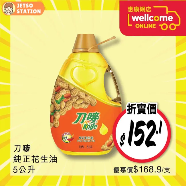 – 刀嘜 純正花生油 5公升 → 折實 $152.1/支