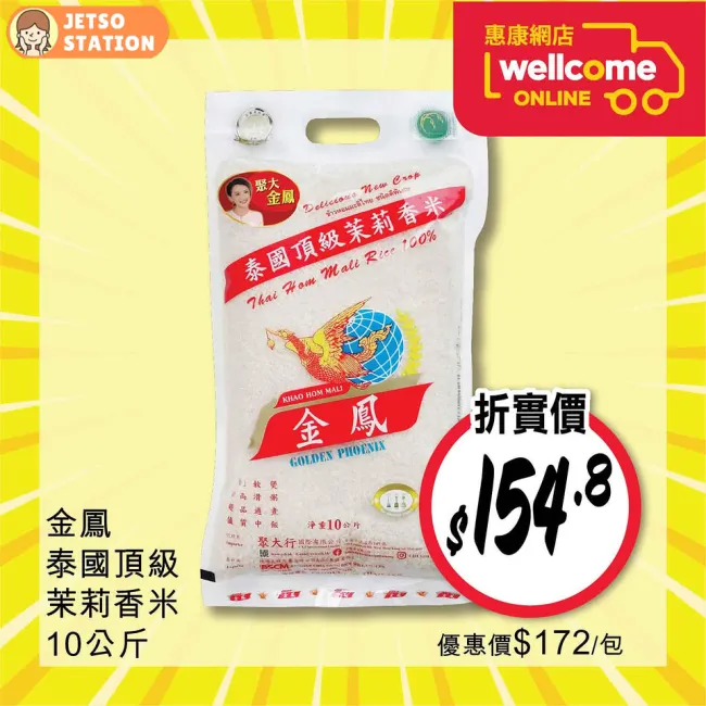 – 金鳳 泰國頂級茉莉香米 10公斤 → 折實 $154.8/包