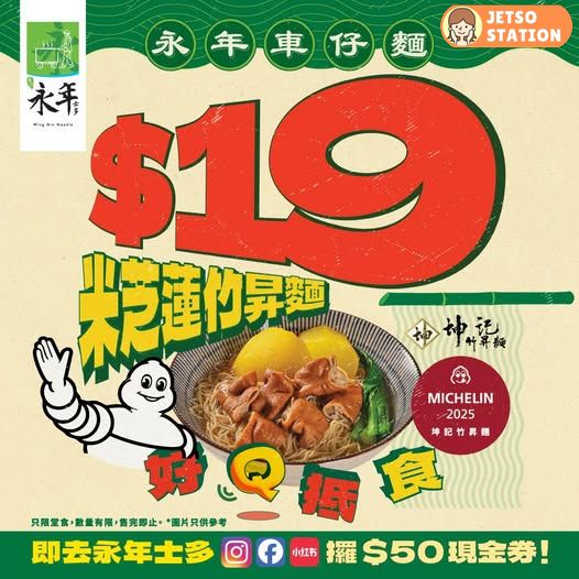 由今日開始,嚟永年$19蚊就食到一碗米芝蓮推介嘅竹昇麵!!