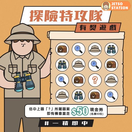 【探險特攻隊】#有獎遊戲 涼涼哋又係去郊遊嘅best timing!不如同特攻一齊去探險,拆解下藏寶圖中嘅「?」應該係咩圖案,就有機會贏走$50現金券!