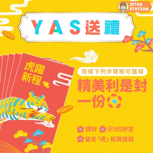 【YAS 送禮| 利是封🧧GIVEAWAY】農曆新年就到喇!準備好迎接虎年未?YAS 今年特別設計充滿老虎元素嘅「虎躍新程」利是封,祝大家新一年可以好似老虎咁龍精虎猛、一躍千里!無論出門、行山、踩單車都可以順風順水,令你可以周圍探索生活細微點!