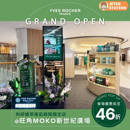 8月「頭」條熱話:Yves Rocher人氣期間限定店登陸旺角MOKO啦!現場設有免費專業皮膚或頭皮毛囊圖像分析服務,為你提供植萃養髮體驗!重點推介一系列「頭」號皇牌產品優惠同禮遇低至46折!快啲過嚟體驗啦!