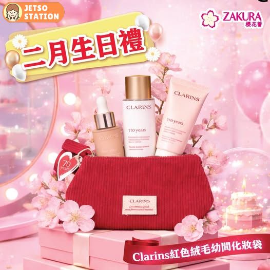 ZAKURA二月生日驚喜 免費換領Clarins紅色絨毛幼間化妝袋